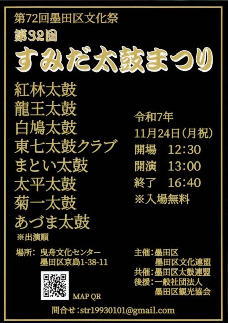 墨田区、墨田区文化連盟(共催:墨田区太鼓連盟 後援:一般社団法人墨田区観光協会)